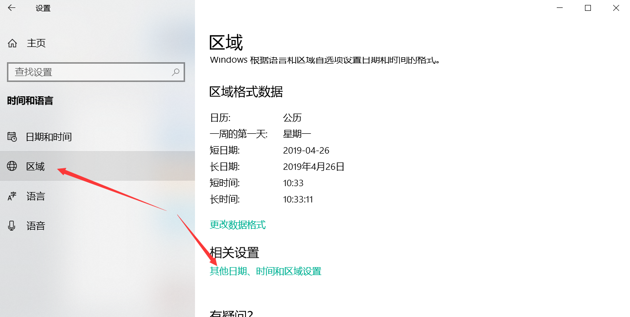 3. 选择区域 - 其他日期 时间和区域设置